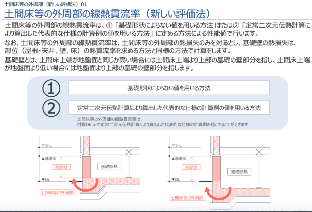 C2)土間床等の外周⻑さと線熱貫流率の入力 基礎断熱部分(土間床等の部分を含む)の外周⻑さ、線熱貫流率、