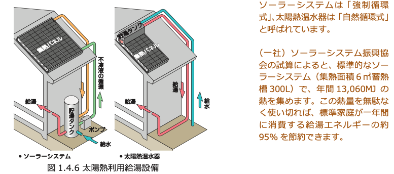 太陽熱利用給湯設備は、「ソーラーシステム」と「太陽熱温水器」に大きく分けられます。