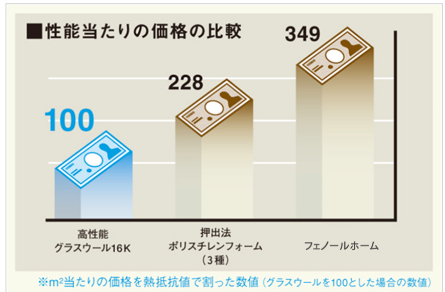コストパフォーマンスで選定するならば高性能グラスウール16kになります。